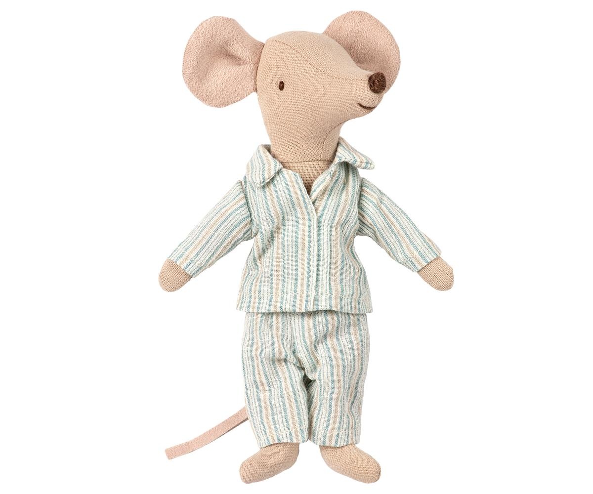 Die Mädchen haben ein gestreiftes Nachthemd und die Jungs einen gestreiften Pyjama an.