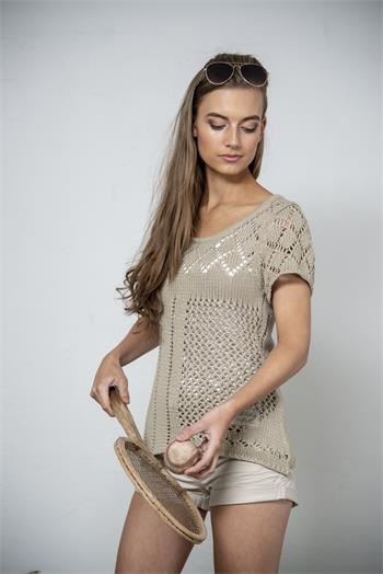 sehr hübscher Pullover in beige, 100% Baumwolle, er sieht aus wie selbstgestrickt.