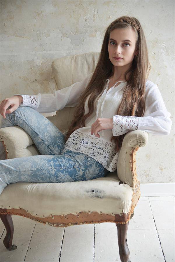 eine wunderschöne leichte Bluse für den Sommer, besonders reizvoll sind die Spitzeneinsätze.