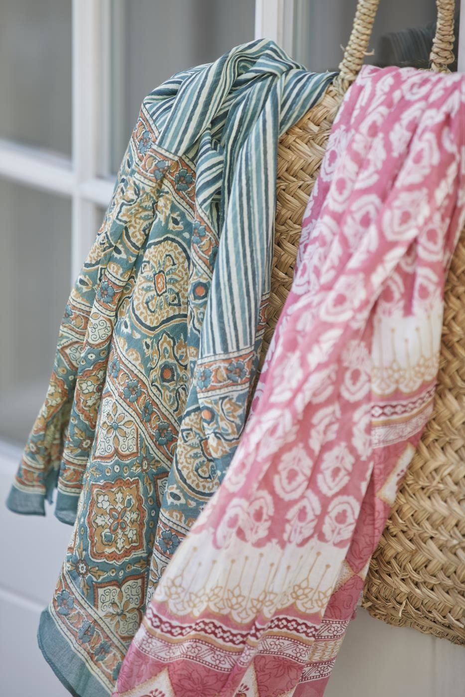 IB Laursen Halstuch grün mustard mit Streifen und Muster von IB Laursen