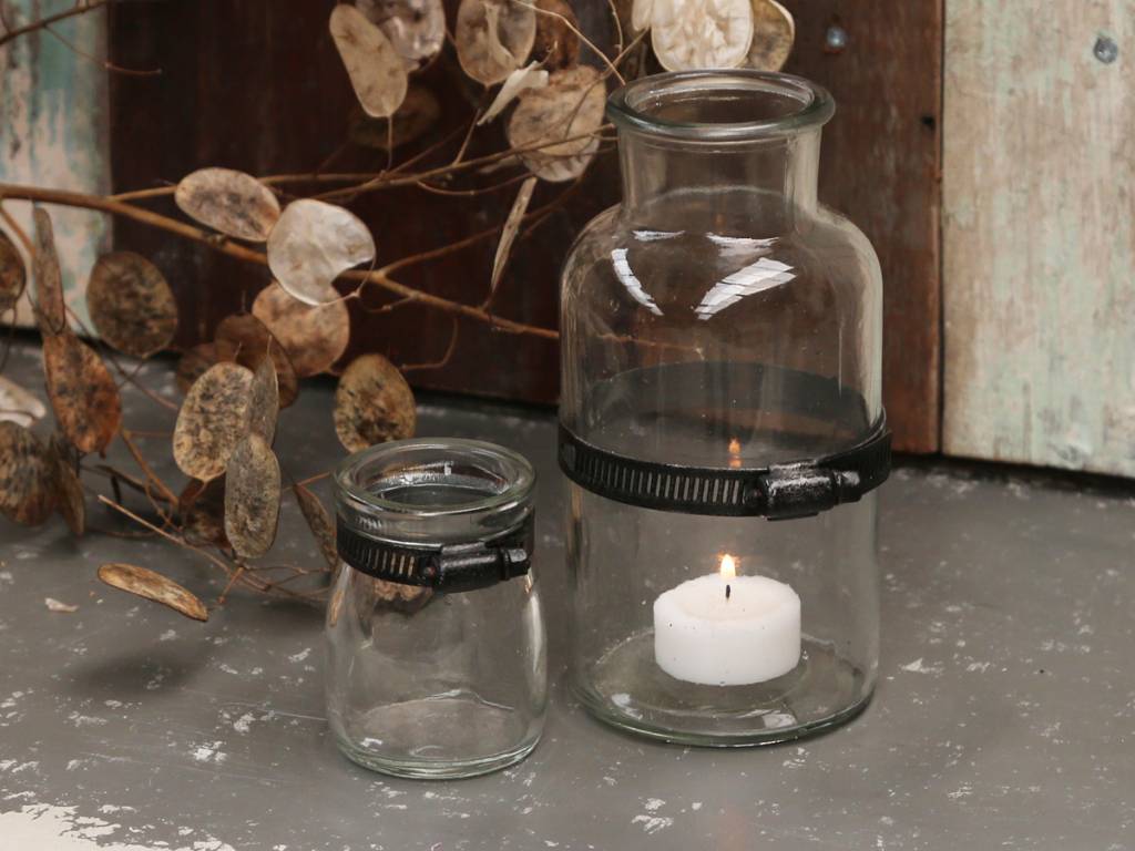 wir lieben diese Gläser aus klarem Glas, ganz besonders, wenn es auch noch mit solchen kleinen Besonderheiten ausgestattet ist, wie z.Bsp. dieser Metallgürtel, der von einer Schraube zusammen gehalten wird.