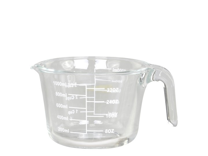 Ein Glasgefäß mit Messeinheiten könnte für die Aufbewahrung oder Abmessen von Flüssigkeiten usw. nützlich sein. ...Zusatzinformation