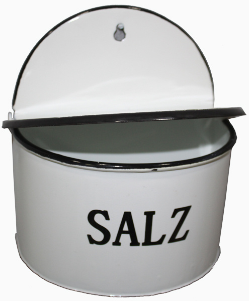 in keiner Landhausküche sollte dieser Wand- Salzbehälter fehlen, somit ist das Salz sofort griffbereit und durch den Deckel geschützt aufbewahrt.